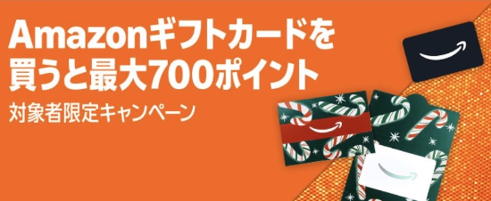 2025年11月14日(金)18:00〜12月23日(火)23:59の期間中、AmazonでAmazonギフトカード(Eメールタイプ、PDF印刷タイプ、配送タイプ)を期間中合計5,000円以上購入でAmazonポイント(期間限定)がプレゼントされるキャンペーンが実施されます。