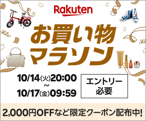 2025年10月14日(火)20:00〜10月17日(金)9:59の期間中、楽天市場で「お買い物マラソン」が実施されます。ショップ買いまわりで楽天ポイントが最大11倍もらえます(ラクマ1倍分含む)。