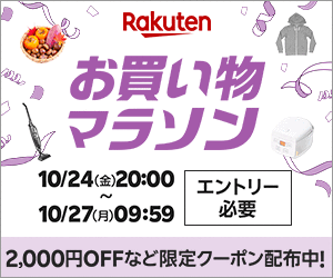 2025年10月24日(金)20:00〜10月27日(月)9:59の期間中、楽天市場で「お買い物マラソン」が実施されます。ショップ買いまわりで楽天ポイントが最大11倍もらえます(ラクマ1倍分含む)。